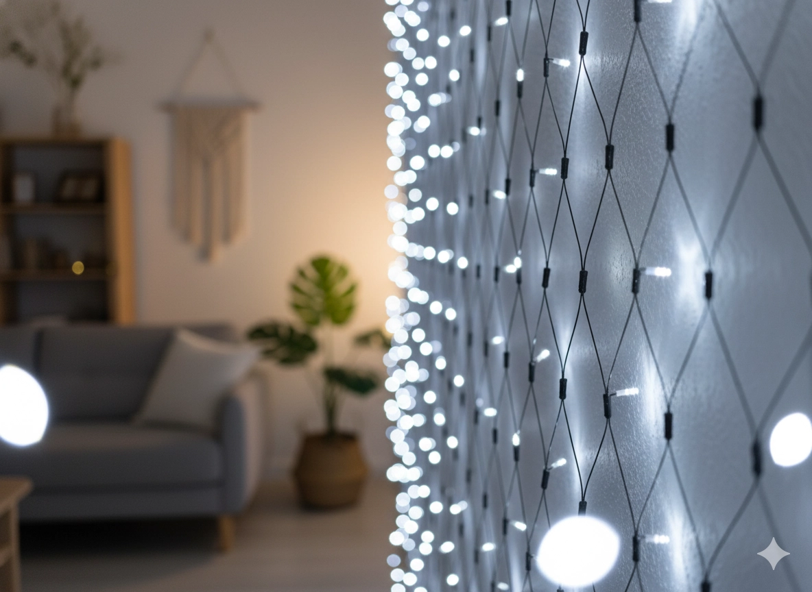 Pro jednoduchou instalaci stačí závěs zavěsit na garnýž, lištu nebo lankový systém; prameny se rozvinou do rovnoměrné kaskády světla a tenký napájecí kabel neruší vzhled. Na výběr jsou minimalistické světelné závěsy, varianty s hvězdičkami či vločkami i efektní LED rampouchy; díky propojitelnosti vybraných sad snadno vytvoříte souvislou světelnou stěnu přes celé okno či pergolu. Zvolte si vánoční světelný závěs, který podtrhne váš styl – úsporné LED, dlouhá životnost a jemné světlo bez zahřívání potěší každý den adventu.