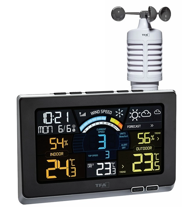Meteostanice s Wi‑Fi i bezdrátová meteostanice umí předpověď počasí, barometr pro měření tlaku vzduchu, hygrometr pro vlhkost a grafické zobrazení trendů. K dispozici je historie měření, šipky trendu, záznam minima a maxima, alarm teploty a vlhkosti, indikátor komfortní zóny i výpočet rosného bodu. U pokročilých setů nechybí srážkoměr a měření větru (anemometr), rádiem řízený čas DCF, budík, kalendář a barevný podsvícený displej či sledování dat v aplikaci.
