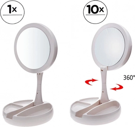 Organizujte si kosmetiku do integrovaných přihrádek v základně. Zrcátko snadno nastavíte díky otočení o 180°.