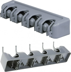 Praktický nástěnný organizér udrží vaše domácí i zahradní vybavení pěkně na svém místě. Nabízí 4 držáky pro kartáče, mopy či tyče a 5 háčků na drobnosti. Snadno se připevní na zeď a díky chytrým upínacím prvkům pasuje na různé průměry tyčí. Ideální do technické místnosti, garáže, dílny, kuchyně i na rybářské pruty.