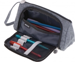 Univerzální 3v1 penál v elegantní šedé barvě slouží jako školní pouzdro, kosmetická taštička i cestovní organizér. Nabízí dvě komory, praktické kapsičky a elastické poutka pro perfektní přehled. Díky odolnému materiálu, zipu a poutku na zápěstí je ideální do školy, na cestování i do kanceláře.