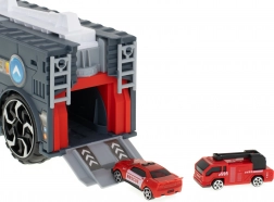 Hasičský kamion funguje jako transportér, který přepraví přiložené modely autíček s pomocí rampy.