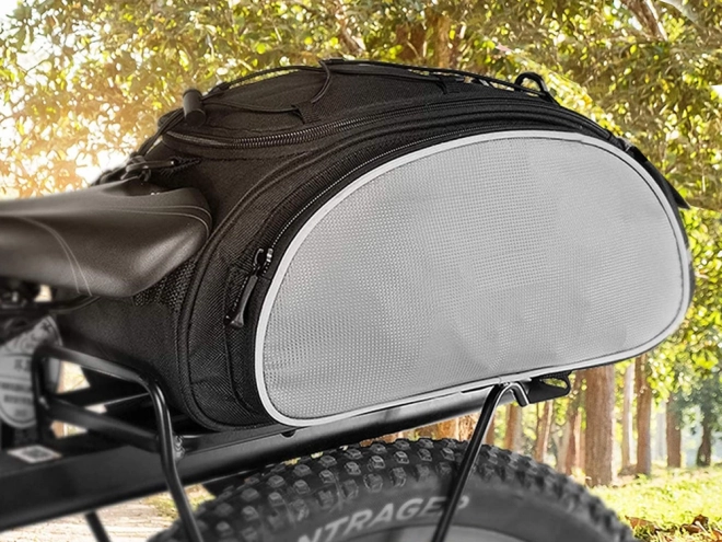 Užijte si cyklovýlety s touto praktickou brašnou na kolo, která se snadno připevňuje na nosič. Nabízí hlavní přihrádku s vnitřní kapsou a dvě boční kapsy na zip pro ještě větší úložnou kapacitu.
