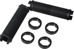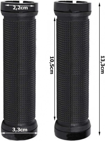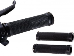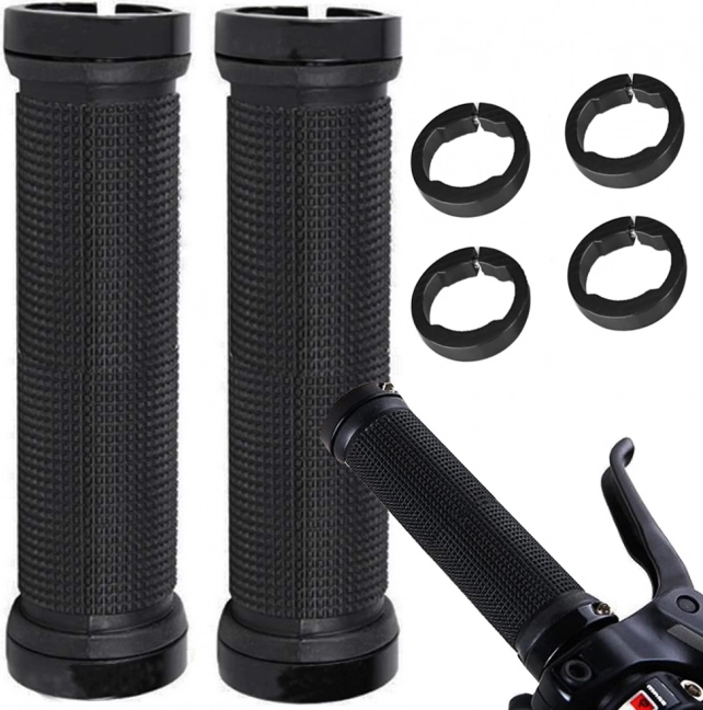 Gumové rukojeti na kolo jsou vyrobeny z kvalitní protiskluzové pryže poskytující měkkost a tlumení nárazů. Kovové koncovky se šrouby zajišťují pevné uchycení a eliminují možnost vyklouznutí gripů během jízdy.