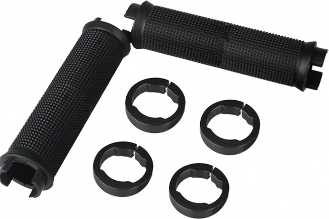Rukojeti jsou vyrobeny z pryže s protiskluzovým povrchem, který zajišťuje bezpečné uchopení a maximální kontrolu během jízdy.