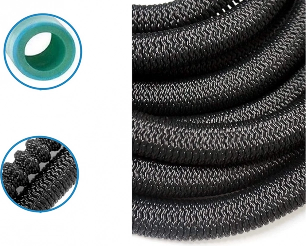 Hadice je vyrobena z vysoce kvalitního polyesterového popruhu, dvouvrstvé latexu a ABS plastu, což ji činí odolnou vůči povětrnostním podmínkám a vysokému tlaku vody. Je snadná na skladování díky jejímu zbalitelnému designu, který šetří místo.