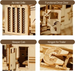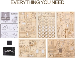 Tento detailní a propracovaný model kamionu je skvělým příkladem precizní řemeslné výroby. Vyroben z laserem vyřezávaných dílků z 2 mm lipové překližky, které se snadno vytlačují z podložky. Účelem je rozvíjet vaše technické myšlení, představivost a jemnou motoriku.