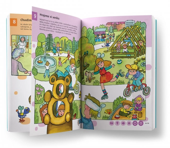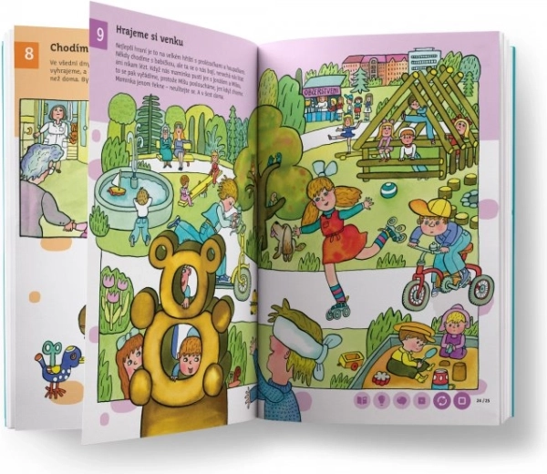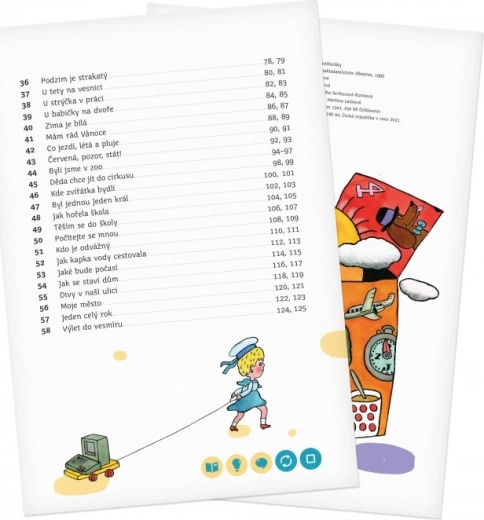 Obsah knihy je rozdělen do 58 tematických kapitol – od života ve městě a na venkově, přes přírodu, moře, zoo až po cestování do vesmíru. Děti se postupně učí abecedu, číslice, barvy, tvary a rozšiřují si slovní zásobu i všeobecný přehled. Kniha nabízí přes 11 000 zvukových stop, které namluvili Karolína Gudasová Neuvirthová, Petr Ryšavý a Michal Stejskal.