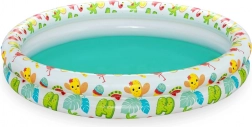 Letní zábava na zahradě během chvilky! Tento set 3v1 od BESTWAY kombinuje nafukovací bazének o průměru 122 cm, plavací kruh a plážový míč s veselými tropickými motivy. Odolný vinyl, dvojité vzduchové komory a snadná přenosnost zaručí bezpečné a hravé osvěžení pro nejmenší.