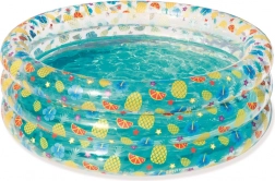 Udělejte dětem radost letním osvěžením v nafukovacím bazénku s veselým ovocným potiskem. Díky průměru 170 cm a výšce 53 cm nabízí dostatek místa pro hraní, zatímco tříkruhová konstrukce zajišťuje stabilitu a měkké nafukovací dno pohodlí. Bazének je snadno nafukovatelný i vypustitelný, ideální pro děti od 6 let.