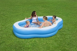 Užijte si léto s prostorným rodinným bazénem BESTWAY, který nabízí integrovaná nafukovací sedátka, držáky na nápoje a průhledové okénko pro více zábavy a pohodlí. Odolný vinyl, stabilní konstrukce a jednoduché nafouknutí/složení z něj dělají ideální bazén na zahradu pro děti i dospělé.