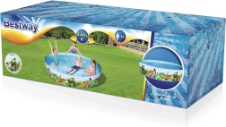 Praktické rozměry 244 × 46 cm poskytují dostatek prostoru pro cákání i ochlazení v horkých dnech. Bazén je určen pro děti od 3 let a díky vinylovému dnu a PVC stěnám lépe odolává běžnému opotřebení. Součástí je opravná záplata pro rychlé řešení drobných poškození.