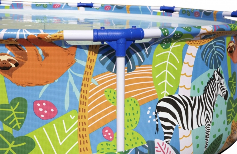 Barevné motivy s motivy zvířat a tropických listů dodávají bazénu veselý vzhled a děti se v něm budou cítit jako v dobrodružství.