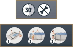 Robustní kruhový bazén pro zahradu nabídne až 9 150 litrů křišťálově čisté vody pro osvěžení v horkých dnech. Kovový rám odolný proti korozi s chytrými spojkami FrameLink System minimalizuje opotřebení v kovových spojích. Liner z vícevrstvého materiálu Tritech je vyztužen polyesterovým jádrem a dvěma silnými PVC vrstvami – je tak mimořádně odolný proti protržení, proražení i nárazům.