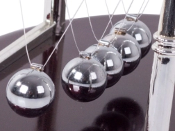Objevte uklidňující rytmus a krásu fyziky. Newtonovo kyvadlo názorně demonstruje zákon zachování hybnosti a energie – pohyb jedné kuličky se přenáší na druhou a vytváří fascinující, plynulý pohyb. Ideální pro krátké pauzy během dne i jako poutavý kousek do interiéru.