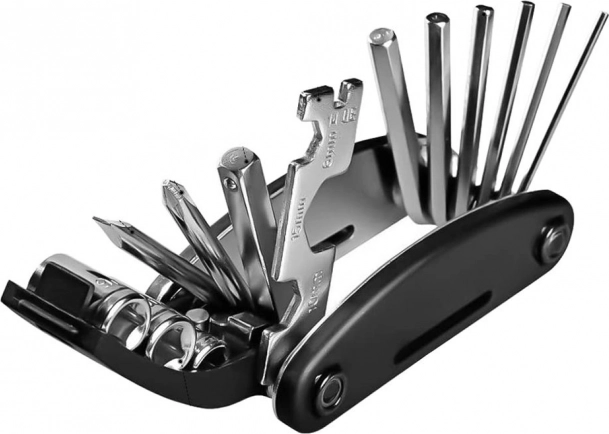 V balení najdete vše potřebné pro běžnou údržbu i nouzové zásahy: imbusové klíče 2–6 mm, nástrčné hlavice 8/9/10 mm, křížový a plochý šroubovák, klíč na paprsky a nástavec pro hlavice. Sada je navržena pro rychlé a pohodlné použití i v terénu.