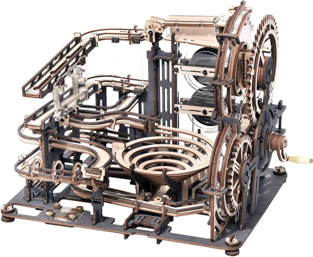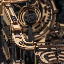 Skládanka obsahuje detailní převodový systém a dráhy, které nabízejí pohled na mechaniku poháněnou ručně.
