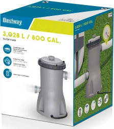 Filtrační čerpadlo Bestway s průtokem 3028 l/h dokáže přečerpat až 3028 litrů vody za hodinu. Správný výběr filtračního čerpadla je zásadní pro jeho výkon a efektivitu. Pro správnou funkci čerpadla jsou potřebné vyměnitelné filtry. Jeden papírový filtr je součástí balení a lze ho očistit propláchnutím pod tekoucí vodou. Doporučuje se výměna filtru každé dva týdny. Čerpadlo je snadné na montáž i obsluhu a balení obsahuje návod v češtině. Filtrační čerpadlo je nezbytnou součástí filtračního systému bazénů, pomáhá udržovat čistou a bezpečnou vodu.