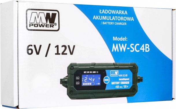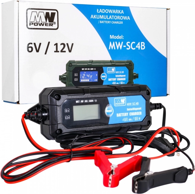 Kompaktní a spolehlivá nabíječka s LCD displejem pro 6V i 12V olověné akumulátory (WET, GEL, AGM). Nabízí volitelný nabíjecí proud 1A/4A, mikroprocesorové řízení, diagnostiku stavu baterie a režim odsiřování pro obnovu kapacity. Ideální pro motorky, auta, čluny i zahradní techniku.