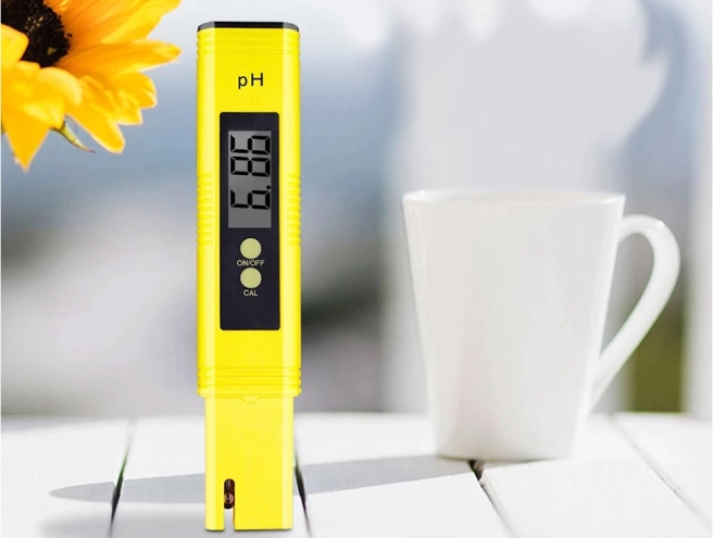 S jasně žlutým a černým designem, náš pH metr je kompaktní a snadno přenosný. Ideální pro každodenní použití doma nebo ve profesionálním prostředí.