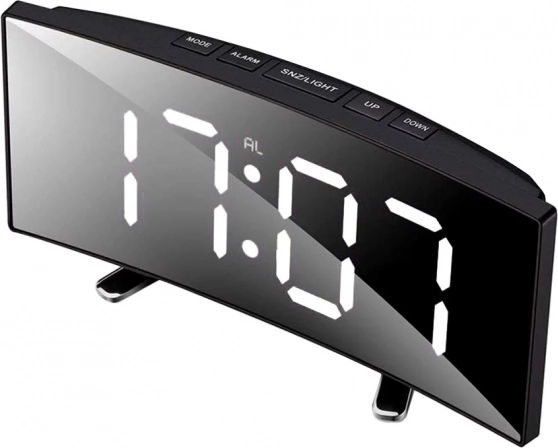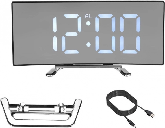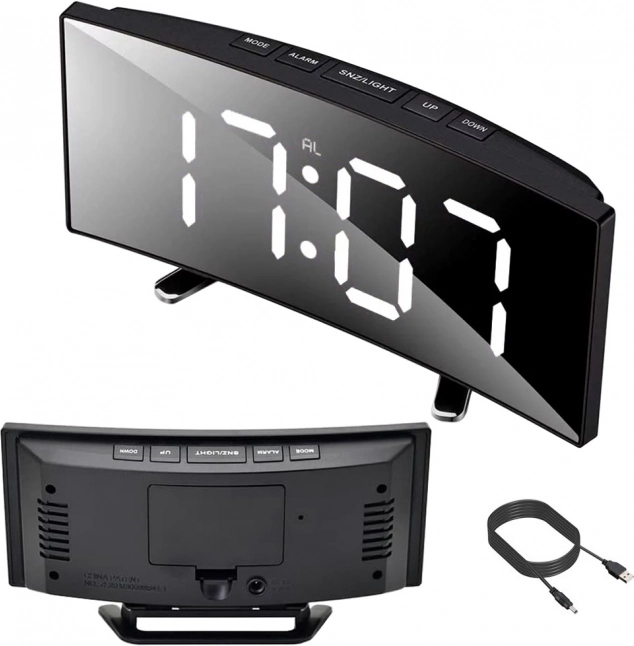 Moderní digitální hodiny s velkým, snadno čitelným LED displejem sjednocují elegantní vzhled a praktické funkce. Zobrazují čas ve formátu 12/24 h, datum a okolní teplotu ve °C/°F. Noční režim automaticky ztlumí jas v rozmezí 18:00–6:00, takže neruší spánek.