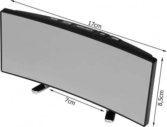 Displej má zrcadlový efekt, takže poslouží i jako rychlé zrcátko. Funkce Snooze vám přidá pár minut navíc pouhým stiskem tlačítka SNZ/LIGHT. Při napájení z USB zůstává displej stále aktivní, při napájení z baterií se po cca 15 sekundách rozsvícení automaticky zhasne pro úsporu energie.