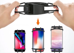 Držák je vyroben z flexibilního silikonu, který se přizpůsobí většině chytrých telefonů s úhlopříčkou obrazovky od 4" do 6,5".