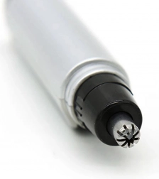 Přístroj poskytuje bezpečný úchop pro přesné manévrování při zastřihování chloupků v nose a uších.