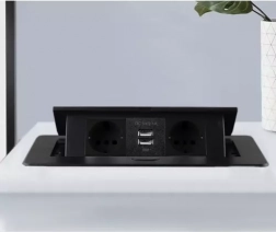 Elegantní zapuštěné napájecí řešení pro stoly, kuchyňské linky i konferenční místnosti: modul se 2 zásuvkami Schuko a 2 USB (5V/2,1 A) v odolném kovovém těle. Díky diskrétnímu výklopnému mechanismu zůstává skrytý, když jej nepotřebujete, a s plochým rámečkem perfektně lícuje s povrchem. Poskytuje spolehlivý výkon až 3300 W a rychlé nabíjení telefonů či příslušenství.