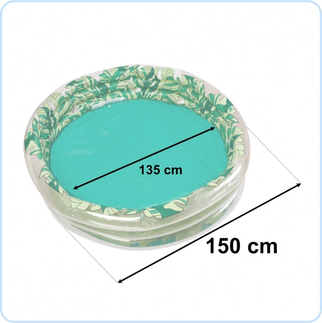 Tento krásný nafukovací bazén s grafikou zelených listů se stane nádhernou dekorací vaší zahrady i místem pro nezapomenutelnou zábavu vašeho dítěte. Díky svým rozměrům - průměr 150 cm, vnitřní průměr 135 cm - je dostatečně prostorný pro více dětí.