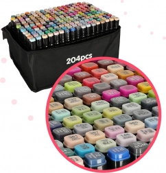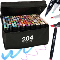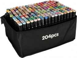 Profesionální sada obsahuje 204 dvouhrotých alkoholových markerů v praktickém pouzdře a se stojánkem pro přehledné uložení. Nabízí intenzivní barvy, rychleschnoucí inkoust a dva hroty pro plochy i detailní práci – ideální pro ilustrátory, designéry i hobby tvoření.