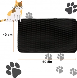 Velkorysé rozměry 40 × 60 cm sedí k většině typů kočičích záchodů. Protiskluzová spodní vrstva brání posouvání i při živějším výstupu z toalety. Údržba je maximálně jednoduchá – stačí podložku zvednout, vysypat a případně opláchnout či vysát.