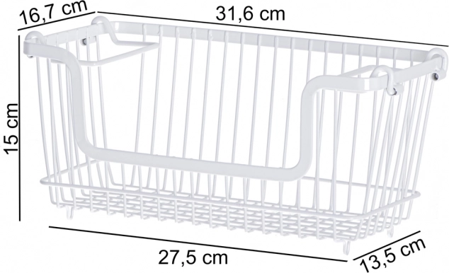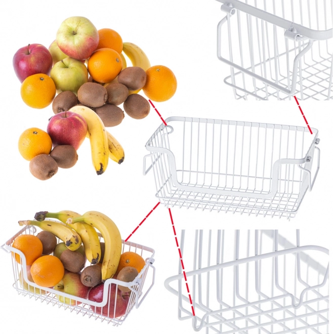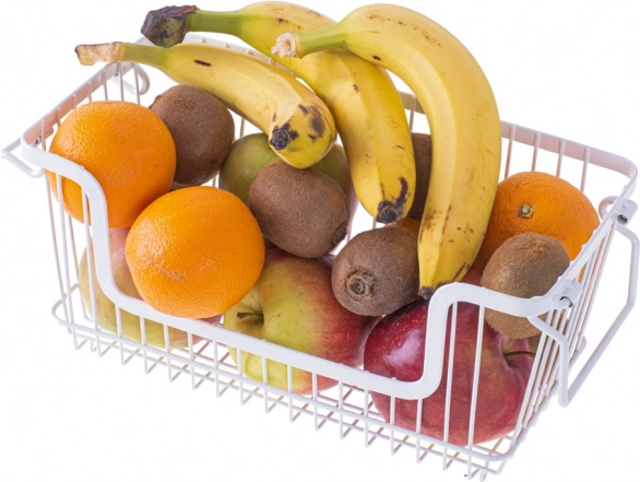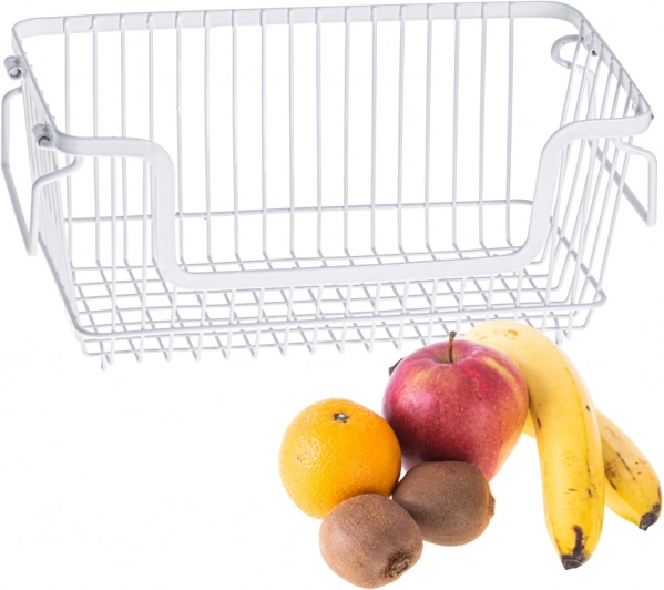 Elegantní bílý drátěný koš je ideální pro skladování a vystavení ovoce, zeleniny či pečiva. Díky pevné kovové konstrukci je odolný a stabilní, otevřený design zajišťuje skvělou cirkulaci vzduchu a přehled o obsahu. Minimalistický vzhled snadno sladíte s moderní i klasickou kuchyní.