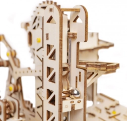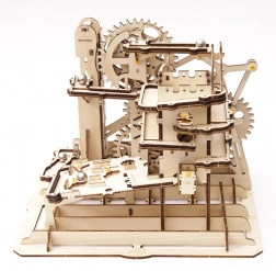 Model obsahuje věžový rozdělovač, spirálové svahy, jeřábový a kolový zvedák, krátkou skluzavku a chytře umístěné spínače, které mění dráhu kuliček. Obtížnost je hodnocena 4/5; složení zabere přibližně 6–7 hodin. Po dokončení jednoduše zatočte klikou a nechte se unést dynamickou podívanou, která názorně ukazuje principy STEM.