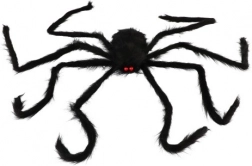 Tento obří černý plyšový pavouk okamžitě upoutá pozornost a vyvolá přesně tu správnou dávku napětí. Je ideální pro výzdobu vstupních prostor, oken, polic nebo party stolů a díky své velikosti se stane dominantou každé halloweenské výzdoby.