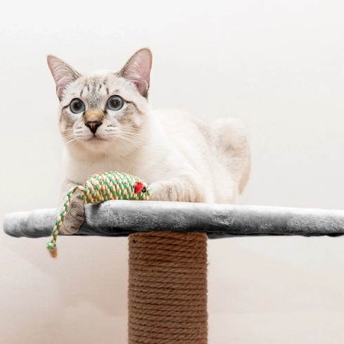 Díky propracovanému designu zahrnujícímu sisalové sloupy a plyšové povrchy je toto škrabadlo ideální pro drápání, lezení a odpočinek. Hlavní výhodou je pohodlné lůžko, které umožňuje kočkám volný odpočinek a skvělou pozorovací pozici. Přidaná hračka povzbuzuje k lovu a hraní.