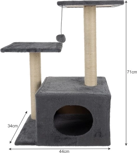 Různé úrovně, hračky a úkryty podporují aktivitu, skákání a lezení koček, udržujíc je fit a šťastné.