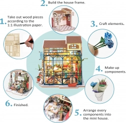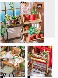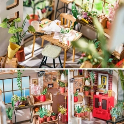 Vytvořte si vlastní malebné květinářství s připojeným skleníkem a množstvím rostlin, polic a vyřezávaných doplňků. Stavebnice obsahuje předřezané díly z překližky, papírové a textilní prvky a sadu nástrojů, díky kterým vznikne realistický model s nápisem „Flower Shop“ a průhlednou skleněnou částí. Po sestavení poslouží jako stylová dekorace vašeho interiéru.