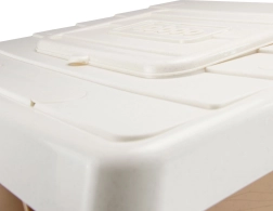 Zadní stěna se dá bezpečně vyklopit a uzamknout, čímž promění domek v otevřený altánek. Uvnitř je více světla, vzduchu a mazlíček má větší pohodlí; zároveň se snadno dostanete dovnitř při čištění.