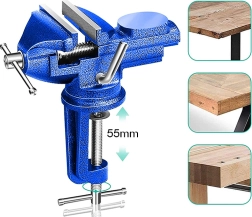 Univerzální rotační svěrák z pevné litiny pro dílnu i garáž. Nabízí otočnou základnu o 360°, robustní konstrukci, integrovanou kovadlinu a spolehlivé uchycení k desce stolu až do cca 55 mm. Ideální pro kovovýrobu, trubky, desky plošných spojů a další materiály.