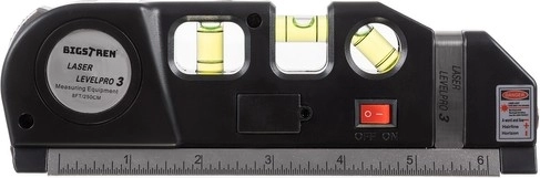 Laserová vodováha od značky Bigstren s vestavěným metrem o délce 250 cm je ideálním nástrojem pro přesné měření a vytyčování linií. Umožňuje současné stanovení horizontálních a vertikálních rovin a je vhodná pro profesionální i domácí použití.