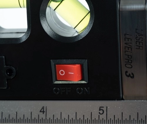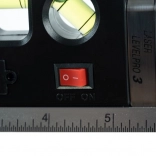 Poziomica má vestavěný rozvinovací metr o délce 250 cm s oboustranným měřítkem v centimetrech/mm a stopách/palcích.