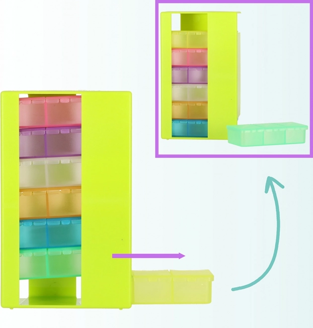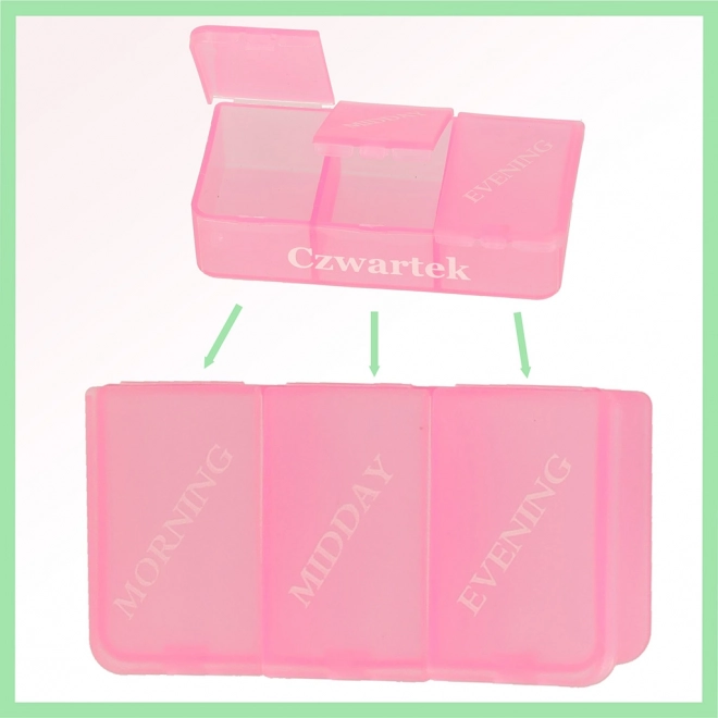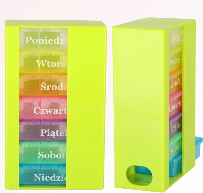 - Organizér obsahuje 7 samostatných pojemníků, jeden pro každý den v týdnu.