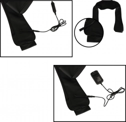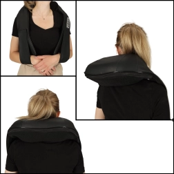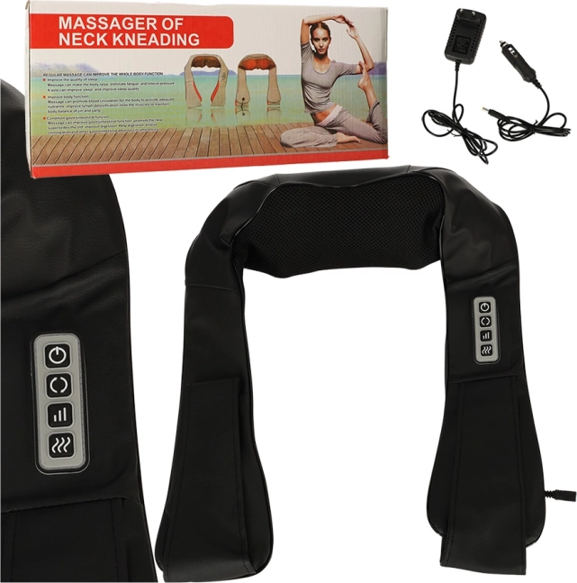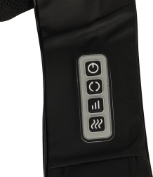 Ovládací panel přímo na límci umožňuje přepínat směr rotace, regulovat intenzitu a samostatně zapínat/vypínat teplo. Odolné provedení z eko kůže a prodyšná kontaktní zóna se snadno čistí a příjemně se nosí. V balení najdete jak síťový adaptér, tak autoadaptér pro pohodlné použití na cestách.