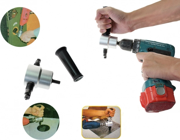 Využijte naplno svůj čas díky tomuto inovativnímu nástavci na stříhání plechu. Snadno ho připevníte na všechny typy vrtaček a získáte tak nástroj, který umí řezat pod úhlem 360 stupňů, aniž by poškodilo materiál.