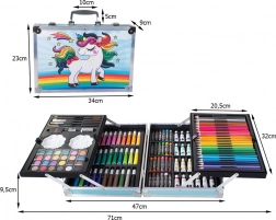 Užijte si hodiny zábavy s touto kreativní výtvarnou sadou, která nabízí různé médie jako olejové pastely, fixy, akvarelové barvy a další. Vše, co potřebujete k vytváření originálních uměleckých děl, je ukryto v praktickém kufříku, který usnadňuje přenos a organizaci.