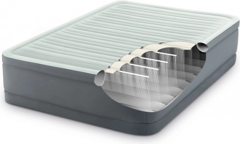 Díky zabudované elektrické pumpě postel snadno nafouknete i vyfouknete během několika minut. Kompaktní rozměry po vypuštění umožňují snadné uskladnění a přenášení – ideální na doma, pro hosty i na chatu.