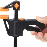 Tato lehká a odolná jednoruční svěrka je ideální pro truhlářství, montáže i DIY projekty. Rychloupínací posuvný systém umožňuje pohodlné ovládání jednou rukou, zatímco pogumovaná spoušť pomáhá plynule dávkovat upínací tlak. Přestavením horní čelisti snadno změníte režim a použijete nástroj jako rozpěrku.