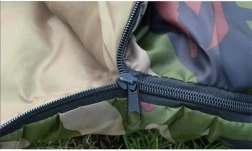 Zip se rozepíná až ke spodní části pro snadné větrání i rozložení na přikrývku. Suchý zip brání samovolnému rozepnutí.