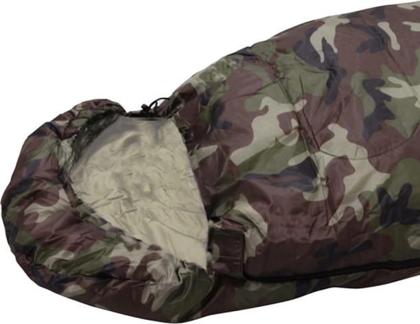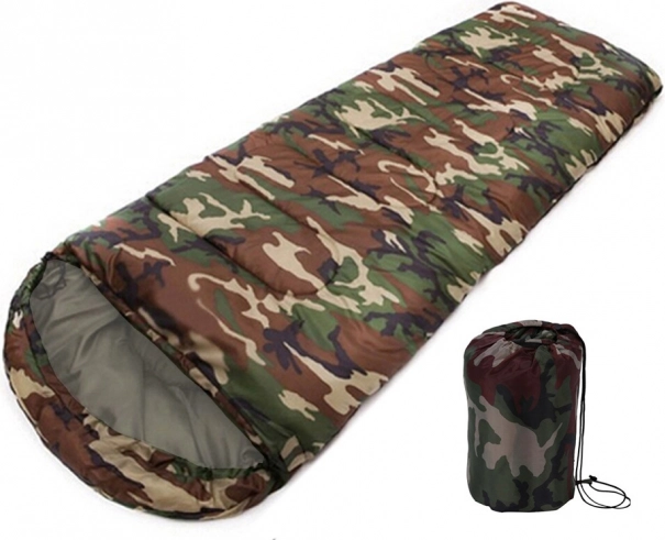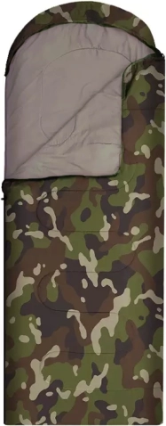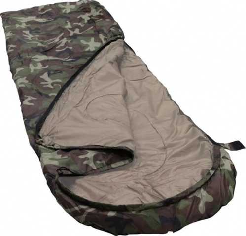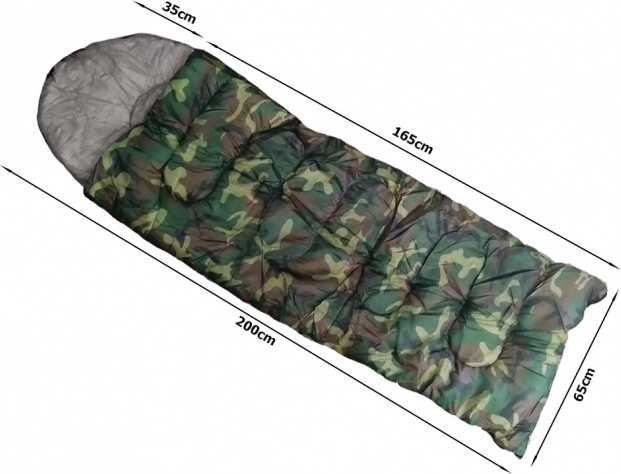 Jednolůžkový spací pytel v maskáčovém designu pro kempování a turistiku. Má zip po celé délce, integrovanou kapuci se stahováním a lehkou, odolnou konstrukci s polyesterovou izolací, která účinně udržuje teplo. Lze jej zcela rozepnout a použít jako přikrývku.